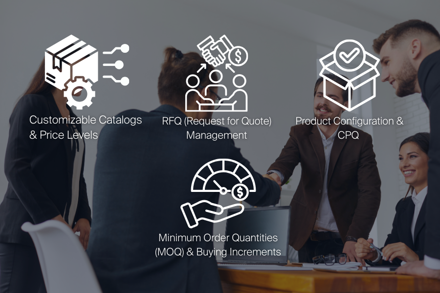 - RFQ (Request for Quote) Management: B2B buyers expect to negotiate pricing, and an integrated RFQ system streamlines quote requests, allowing sales teams to respond faster.